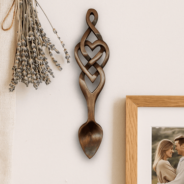 Introducing the Welsh Love Spoon Celtic Heart! This beautifully crafted spoon features a unique Celtic heart design. Share your heart and heritage with your loved ones, a perfect gift for any occasion.