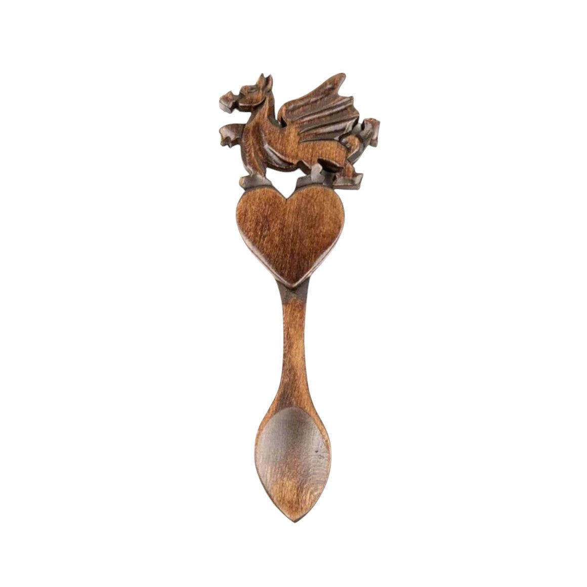 Celebrate Welsh heritage with this charming love spoon featuring an intricate dragon design. Handcrafted with traditional craftsmanship, this petite spoon makes a delightful gift for those who cherish Celtic culture and folklore. Perfect for display or as a meaningful keepsake, it captures the spirit of Wales in every detail. A playful nod to romance and tradition, this small treasure brings a touch of Welsh magic to any collection.