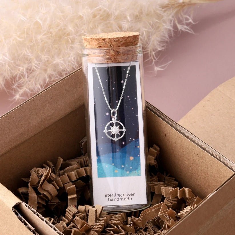 Navigate your style with the Compass Crystal Silver Necklace! This sparkling silver charm adds a touch of adventure and whimsy to any outfit, guiding you toward fun and fabulous looks. Perfect for those who love a little sparkle and a lot of personality.