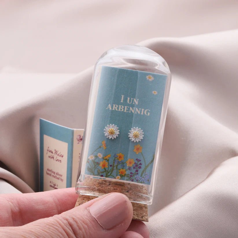 Add a touch of sunny charm to your look with the 'I Un Arbennig' - (To a Special One) Daisy Silver Earrings. Crafted in shimmering silver, these delicate daisies bring a playful and fresh vibe to any outfit, perfect for brightening up your day with a sprinkle of floral fun.