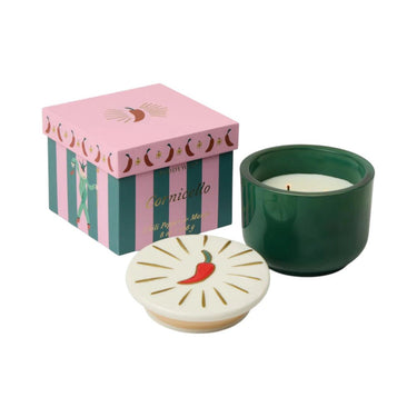 Charmed Green Glass Candle with Chili Lid - Chili Pepper & Mango