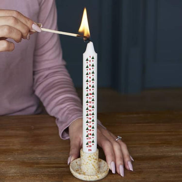 Get ready for the holiday season with this Christmas Tree Advent Candle! This fun and festive candle will add a touch of charm to your home decor and help you count down the days until Christmas. Perfect for the whole family to enjoy!