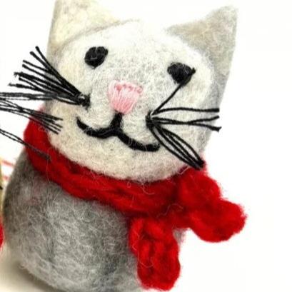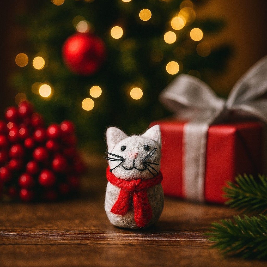 Introducing your new pint-sized feline friend! This adorable mini grey cat sports a charming scarf and is crafted from soft felt, making it the perfect quirky addition to shelves, desks, or gift bags. With its sweet expression and cosy accessory, this little companion brings a touch of whimsy and warmth to any space. Ideal for cat lovers, collectors, or anyone who appreciates handcrafted charm with a playful twist.