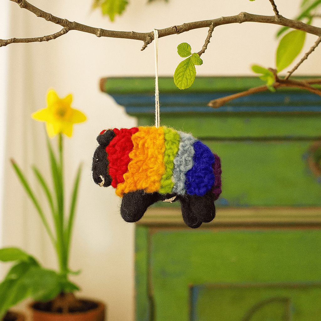 Add a touch of whimsy to your home with our Rainbow Sheep Felt Decoration! This colorful and quirky accessory will surely bring a smile to your face. Perfect for any room, this decoration will add a playful touch to your decor. (Sheep puns not included)