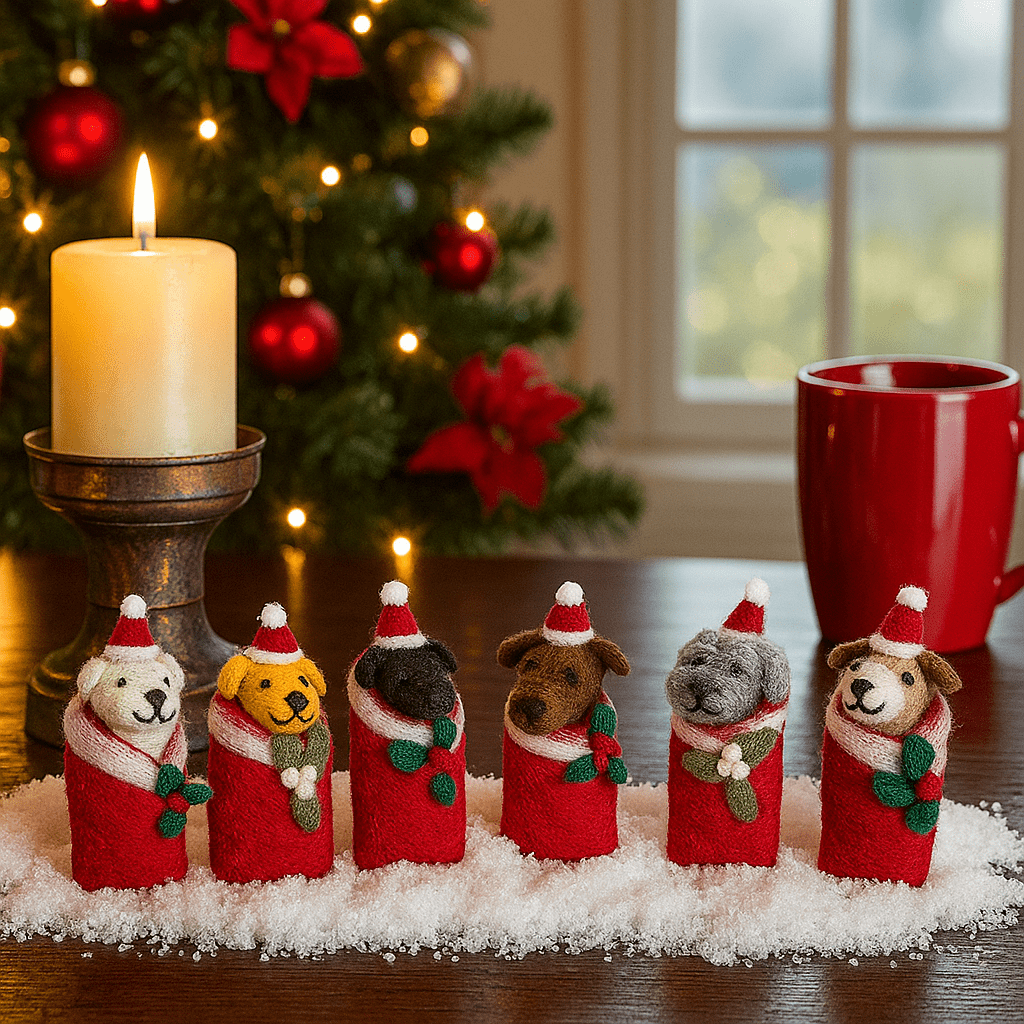 Snuggle up this holiday season with the adorable Swaddling Puppies Felt Decoration. These tiny felt pups wrapped in cozy blankets add a playful and heartwarming touch to your festive décor. Perfect for brightening shelves, mantels, or Christmas trees with a dose of puppy charm and holiday cheer.