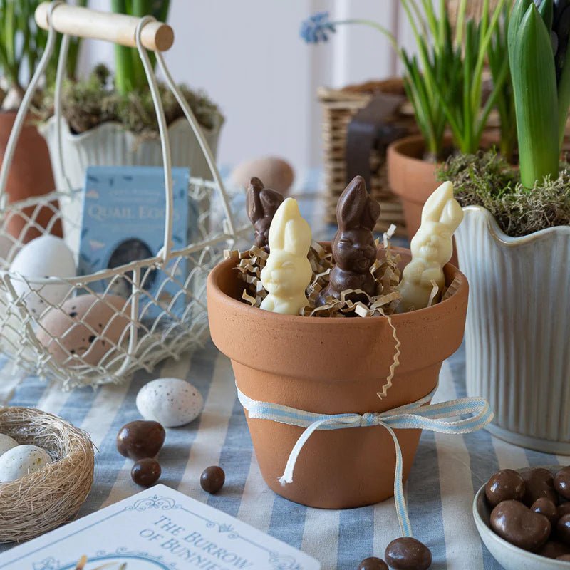 Hop into Easter magic with our delightful Burrow of Bunnies Book Chocolate Gift! This charming collection features four adorable milk and white chocolate bunnies nestled within a beautifully illustrated storybook. Perfect for little ones and chocolate lovers alike, each bunny is crafted from premium chocolate, making it an ideal gift for Easter celebrations, birthdays, or simply spreading joy. Watch faces light up as children discover these sweet surprises tucked inside their very own bunny-themed adventure book. A treat that combines storytelling with indulgence!