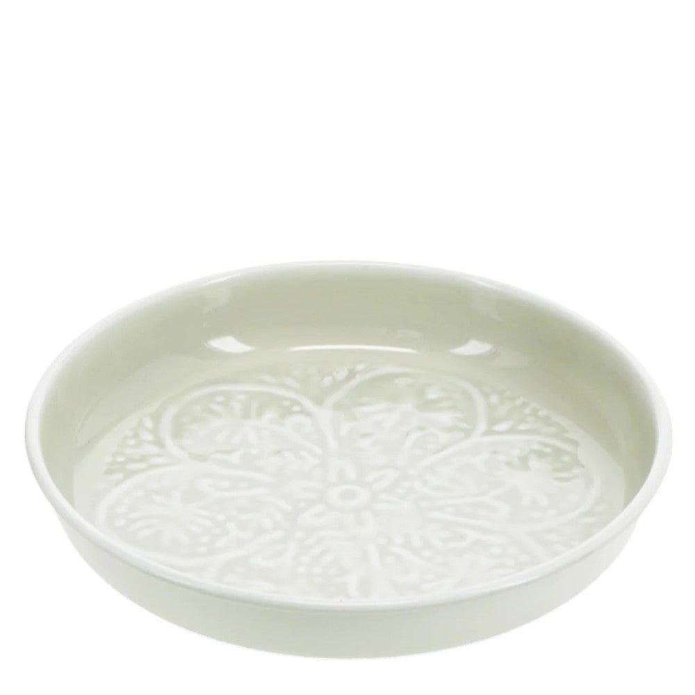 Decorative cast metal trinket dish with Light Grey enamel finish. Circular in shape, with a beautiful pattern in the centre. The perfect accessory for home décor, that can be used to place a wide array of small items: Knick knacks, jewellery (rings, earrings, etc.), keys, loose change and more.