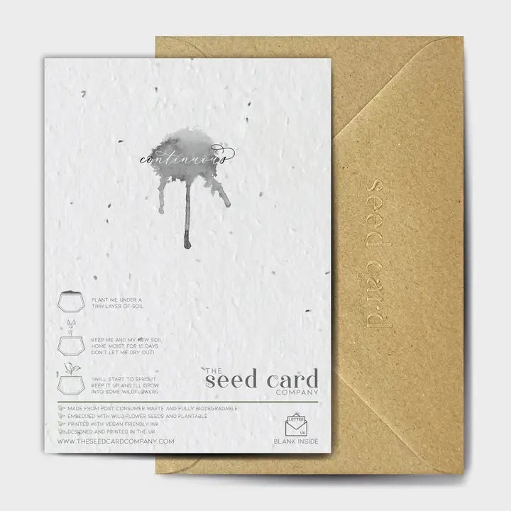 Made from seed card, a post-consumer paper waste and 100% biodegradable seed-embedded card and printed with vegan-friendly inks.