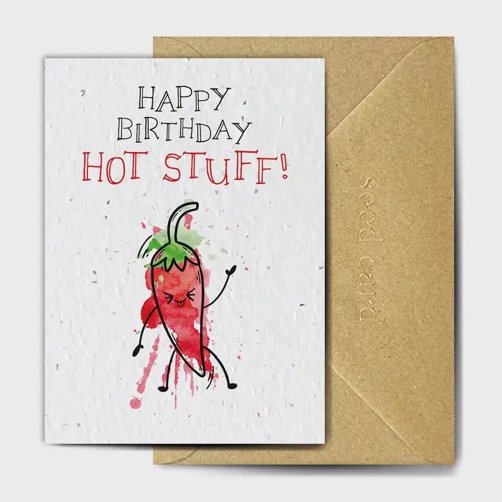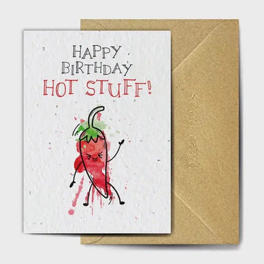 Celebrate in style with the Happy Birthday Hot Stuff Plantable Card! This cheeky card not only sends your warmest wishes but also grows into vibrant plants, turning your greetings into a blooming surprise. Perfect for adding a little extra sparkle and fun to any birthday celebration. Plant it, water it, and watch your message come to life!