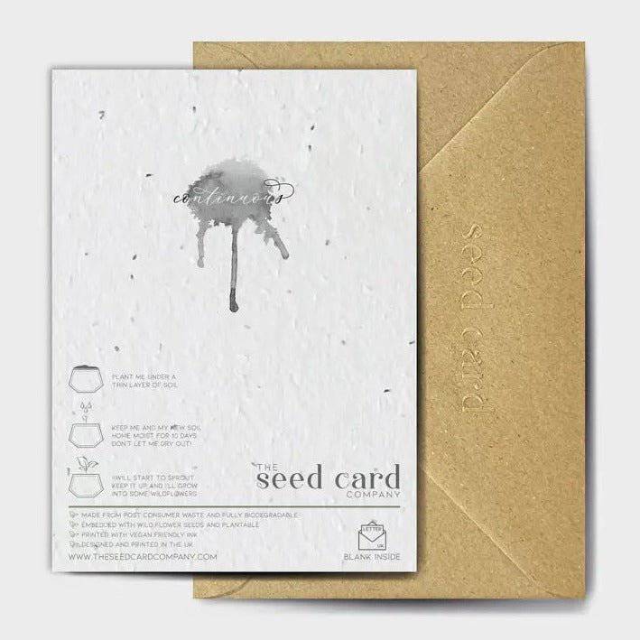 A post-consumer paper waste and 100% biodegradable seed-embedded card and printed with vegan-friendly inks.