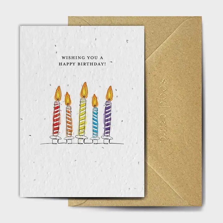 A post-consumer paper waste and 100% biodegradable seed-embedded card and printed with vegan-friendly inks.