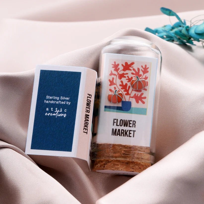 Add a touch of autumn whimsy with these Flower Market Enamel Pumpkin Silver Earrings. Crafted with playful orange enamel and polished silver, they bring festive charm to any outfit. Perfect for brightening your day or gifting a little seasonal sparkle!