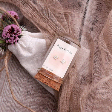 Sterling silver Gold Plated with Crystals Presented on a sweet message card, this selection is ideal for a friend or family. Further housed in a glass and cork terrarium, make it perfect keepsake gift.