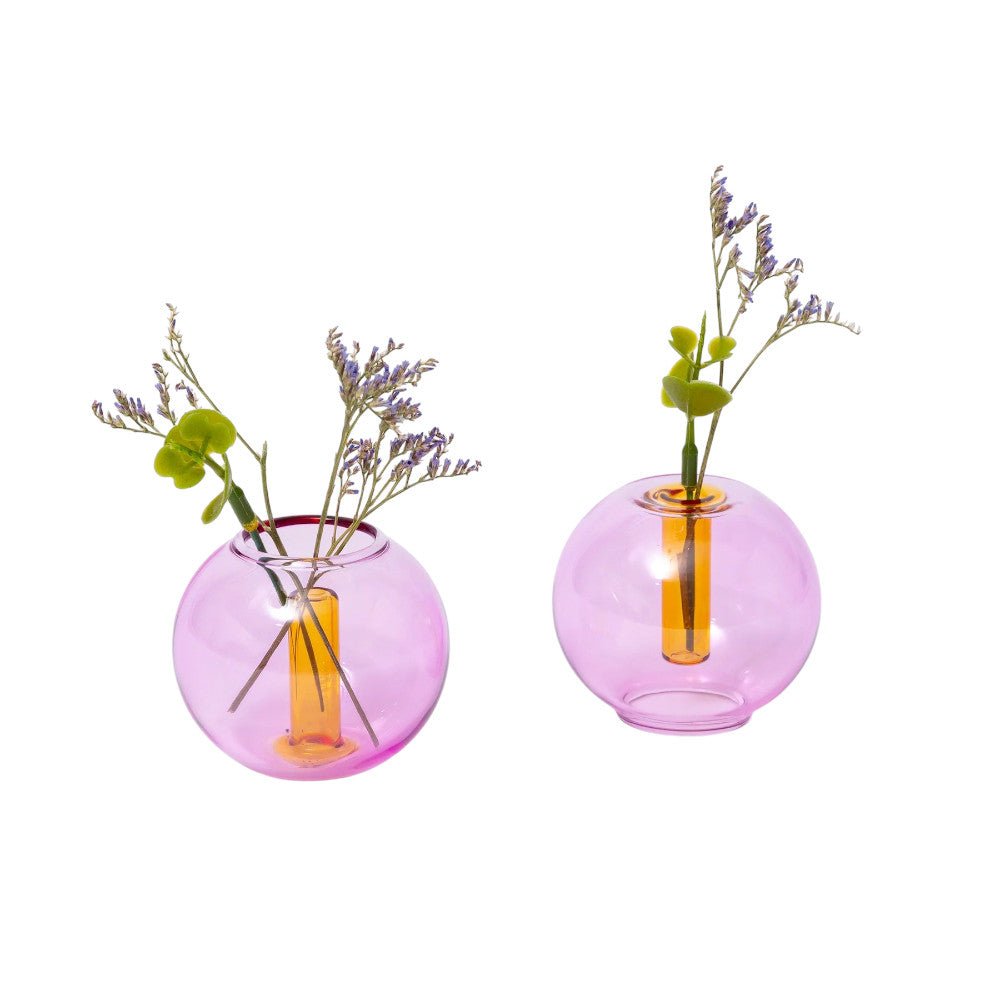Whether filled or empty, the versatile round vase is a beautiful geometric object, sitting neatly in the palm of your hand as you choose the perfect spot for the charming tiny vessel. They look beautiful beside the bed, or decorating a whimsical tablescape.