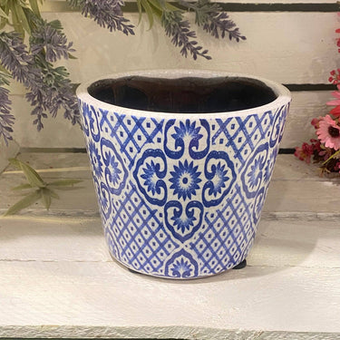 These are beautiful glazed terracotta pots, perfect for your houseplants or small outdoor garden. This set includes 6 pots, each showcasing a different blue design to cater to varying aesthetic tastes. Some feature vintage-inspired designs for a touch of timeless charm, while others present contemporary patterns for a modern flair.