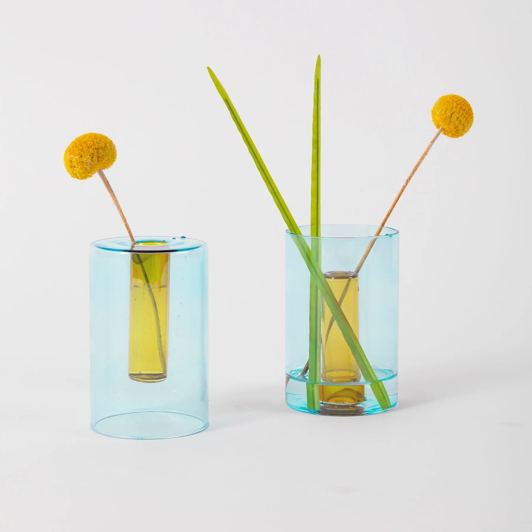 Two glass coloured vases in one, they’re designed to let your creativity flourish and make you fall in love with flowers again.